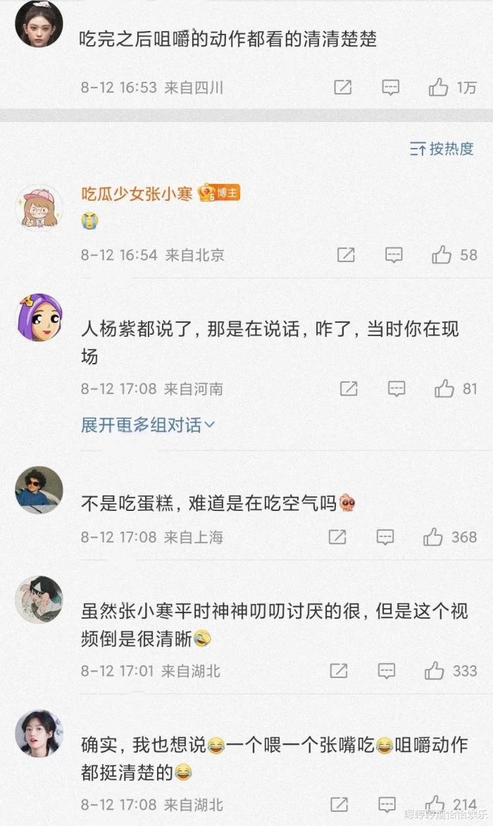 有網友表示:吃蛋糕咀嚼的動作都清清楚楚,不是吃蛋糕,難道在吃空氣?