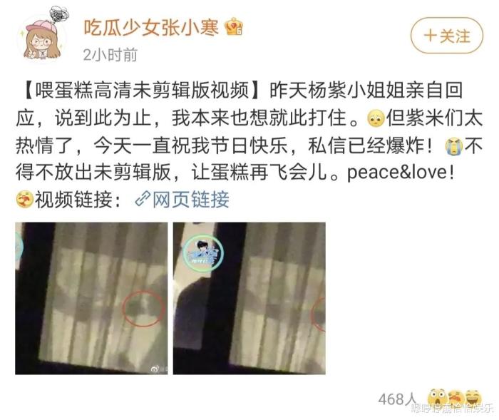 楊紫說謊了?狗仔公開高清無剪輯視頻,喂吃蛋糕的動作很明顯!