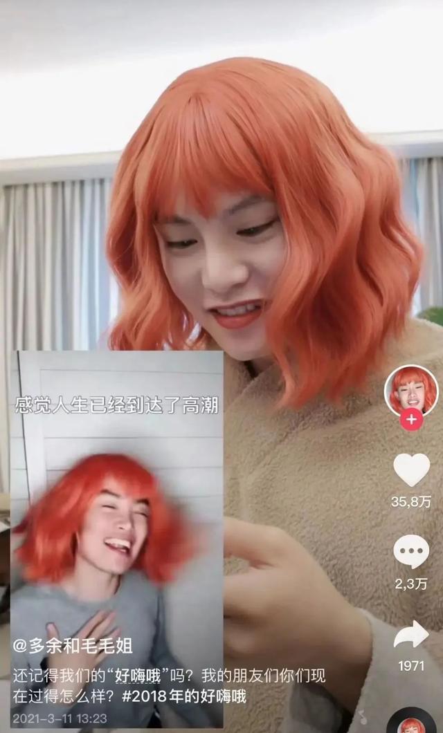 2018年時,多余和毛毛姐的爆火,是劇情號在抖音的第一次勝利。在那條頗為出圈的視頻里,毛毛姐模仿一個剛剛走進(jìn)酒吧的農(nóng)村人在蹦迪,一邊蹦迪一邊喊出:好嗨哦,感覺人生到達(dá)了巔峰。