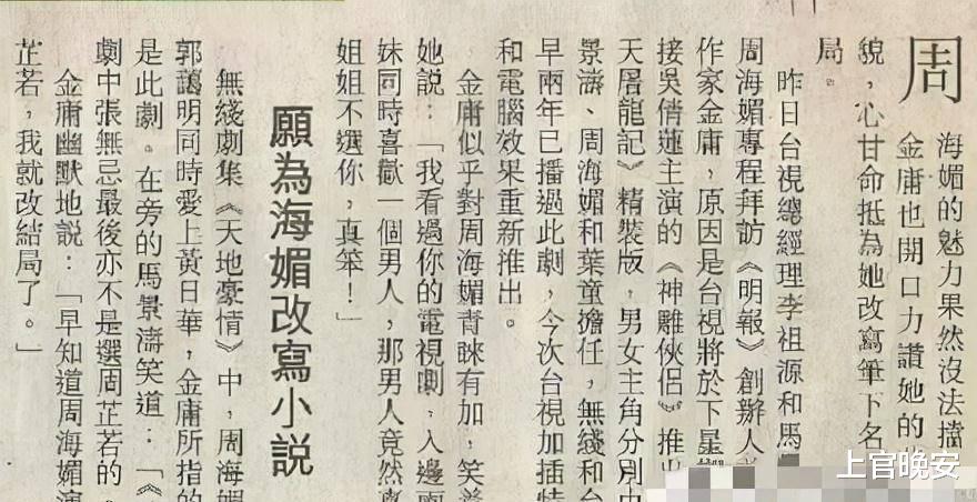 當年她拍《倚天屠龍記》時完全符合金庸心中的周芷若形象,因為她的出演太過完美,金庸差點為了她而改寫周芷若的結局。