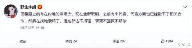 可出事之后,田馥甄自然不可能還會像從前那樣過得滋潤。據網絡大V野生炸姐爆料稱,田馥甄之前計劃在內地舉辦演唱會,現在全部取消了,還有之前簽訂的代言,都已經撤下了相關合作,現在正在聯系她要求索賠,但田馥甄那邊卻不搭理,裝死不回復也不賠償。