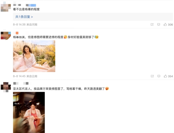 楊冪為維密所拍攝的這一組內衣大片,在我看來是很好看的。不過對于楊冪的部分粉絲來講,其仍然認為攝影師和修圖師沒有將楊冪的美展現出來。根據粉絲在評論區發表的言論來看,多數的粉絲都認為品牌方的修圖師技術不夠,沒有將楊冪的美完全展現出來。