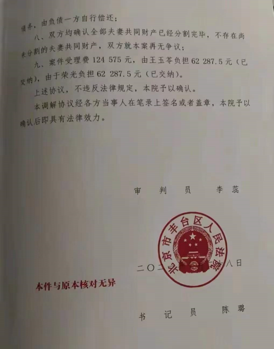 如今,兒子也成家立業(yè),生活穩(wěn)定,估計王玉苓也想通了,在花甲之年放自己自由,不過,在財產(chǎn)分割這件事上,于榮光還挺男人的,并沒有虧待前妻。