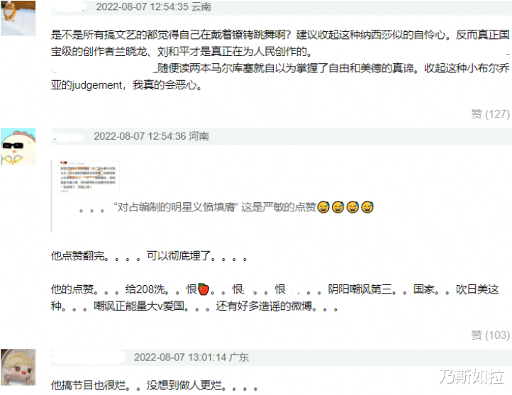 最近很多文藝界人士和高級知識分子,總是唱反調。