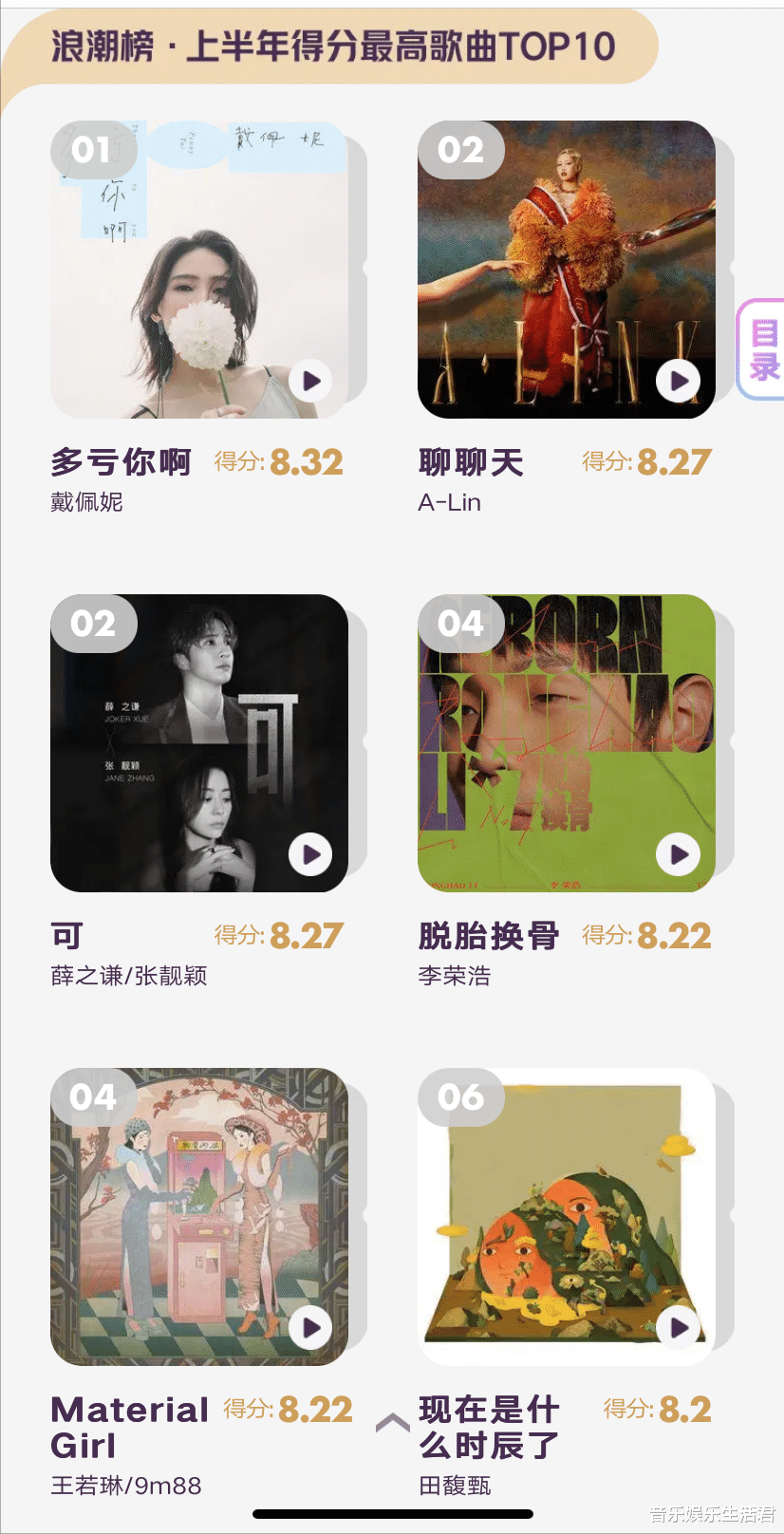 其實,對于平臺整理出來的評分最高的10首歌曲里,大熱歌曲并不多,整體來說有點偏冷門,可能是因為都是新歌的原因吧。