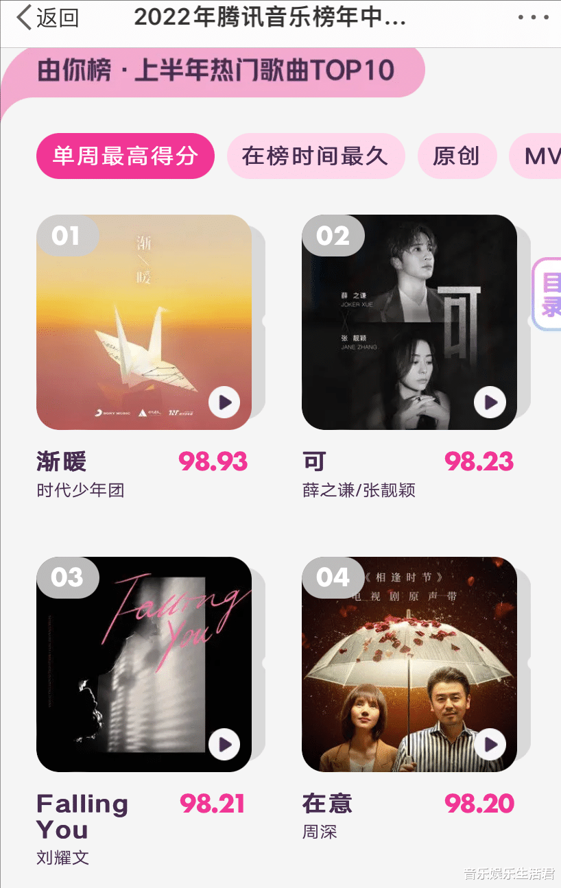 這次某大型音樂平臺整理出來的2022上半年榜單囊括了太多內容。有最佳表現歌手,有評分最高歌曲,有十大熱門歌曲,有不同年齡階段的用戶喜歡的不同歌單等等。