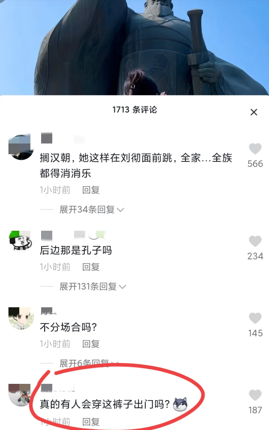 而這些玩“擦邊球”的網紅美女們,為了讓更多人看到她們的視頻,吸引更多流量,她們也是想盡了辦法。就像這位叫“橙子”的網紅,竟然跑到漢武大帝的雕塑下面跳舞,本以為能引起人們的注意,沒成想招來了一片吐槽之聲!