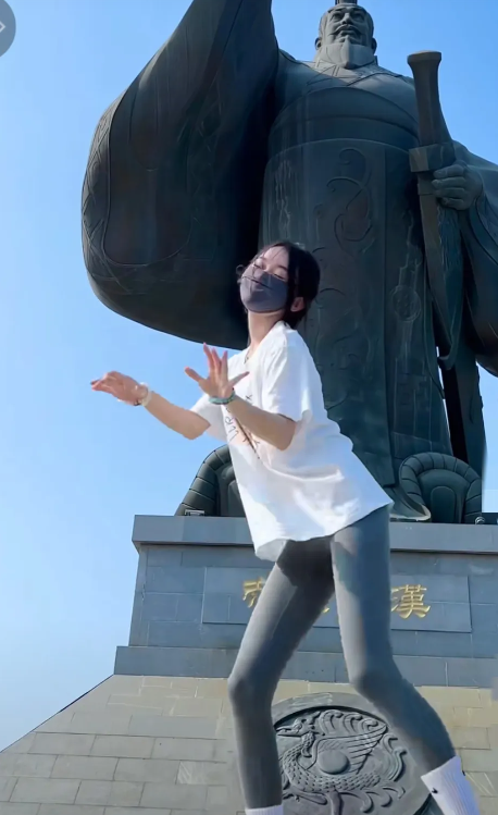 而且橙子平時都在家里拍攝,所以沒有什么值得爭議的,只是這一次橙子不滿足于在家里跳舞,也學著其他美女網紅在戶外跳舞,結果沒有選好背景!從畫面中來看,橙子拍視頻所在的地方應該是一處歷史文化旅游景區,背后正是知名的歷史人物漢武大帝,像這種地方一般都是要保持莊重的,但橙子沒有!