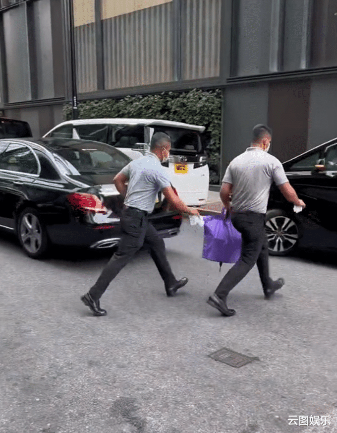 等劉鑾雄上車后,那兩個保鏢迅速上了街對面的另外一臺黑色車子,他們似乎怕跟丟老板,顯得很是慌張。網友忍不住調侃,瞧這慌張勁,工資絕對很到位。