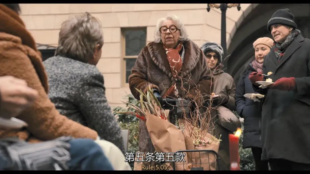 邦妮雖然在公寓大樓里度過了大半生,但沒有多少真正的朋友,因為大家都把她當成“愛挑刺兒的煩人老太太”,所以她也總是跟大家保持社交距離。恰恰是查爾斯和梅布爾帶有善意的夸獎,讓邦妮意識到自己還來得及改變,當晚就帶著香檳,想要加入查爾斯他們舉辦的家庭派對。
