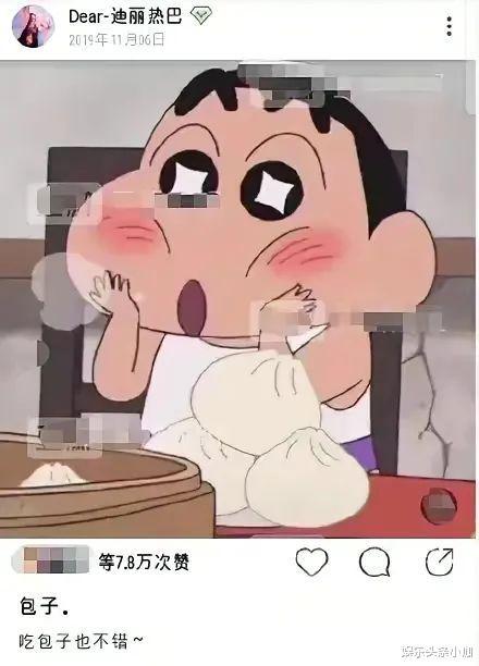 碰巧,熱巴在社交平臺(tái)上貼了一張蠟筆小新吃包子的照片,上面寫(xiě)著:吃包子也不錯(cuò)。