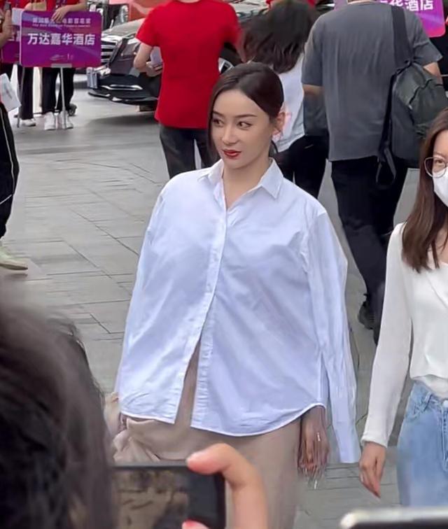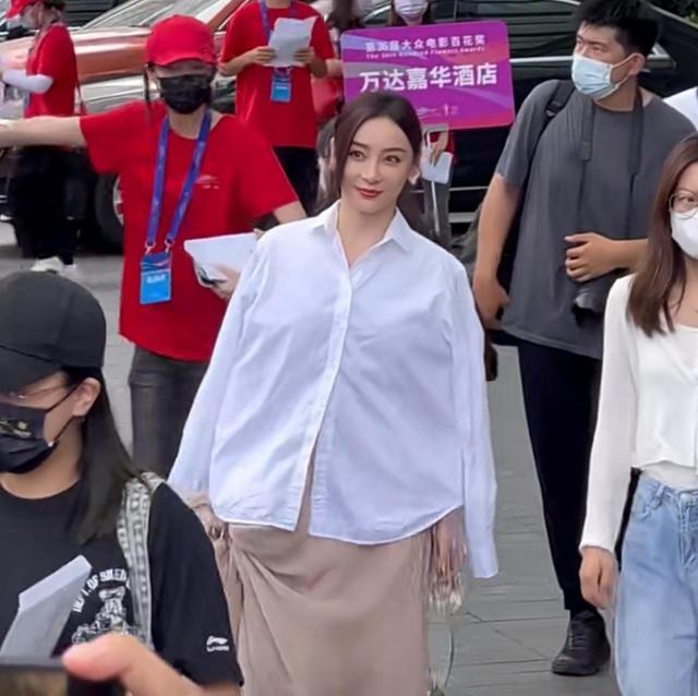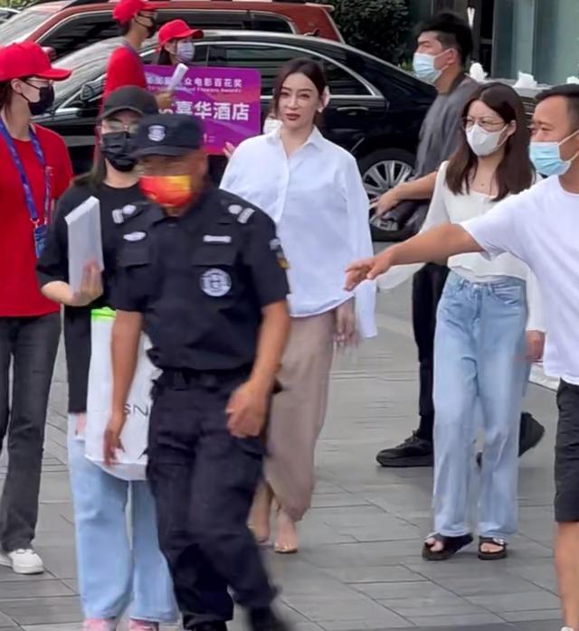 袁姍姍穿著禮服,為了不曝光禮服所以外面穿了一件白色襯衫,妝容精致,但感覺袁姍姍滿臉不耐煩,不知道是否因為什么事情不鬧心,身邊助理小心維護,其實粉絲們還是挺有理智的,并沒有擁擠也沒有特別夸張懟臉拍照。