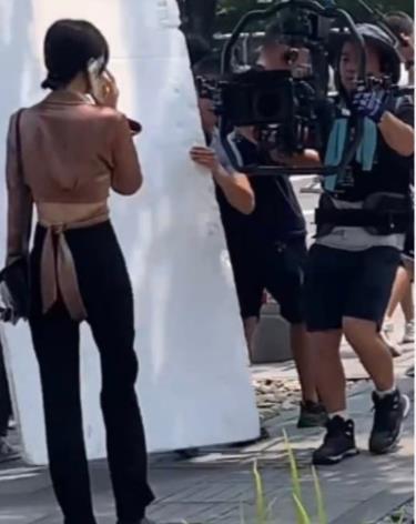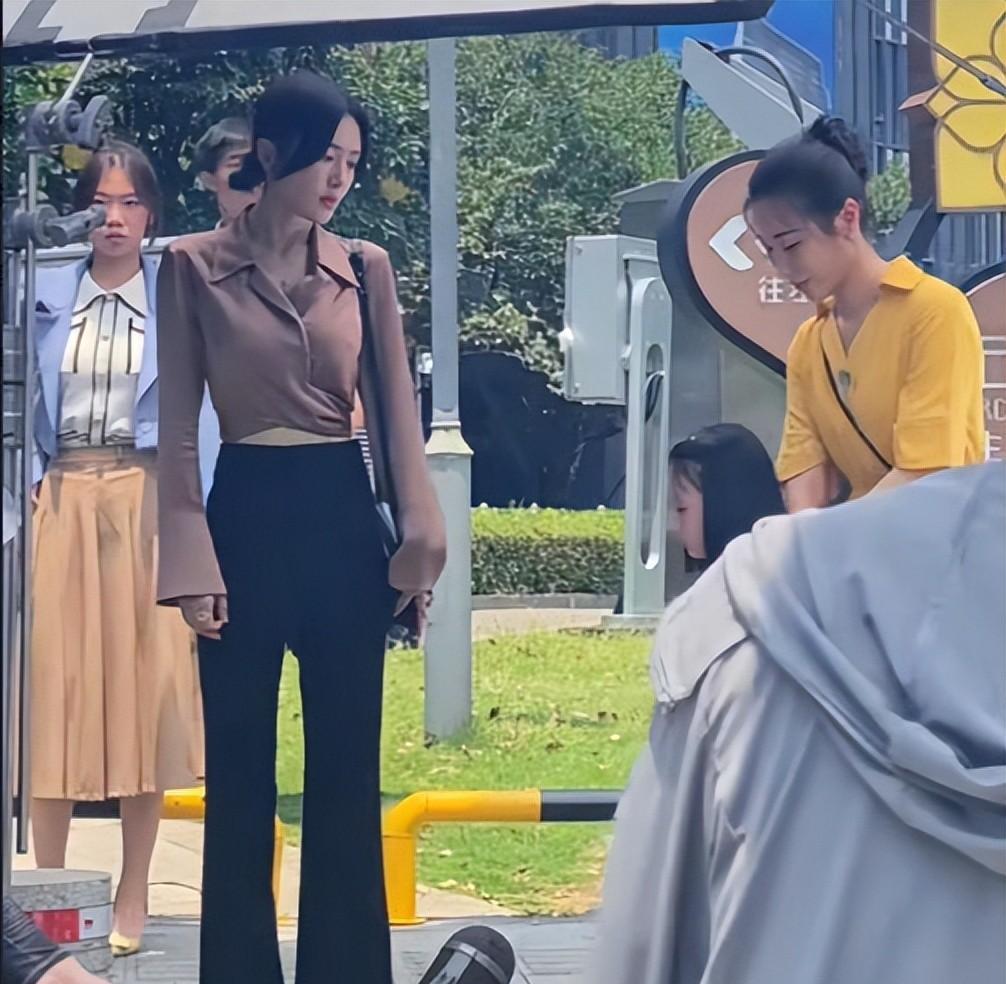 畫面中的秦嵐身著一件棕色的露臍襯衫,下穿一條黑色的修身闊腿褲,整個人看起來干凈利落,渾身上下沒有一絲贅肉,曲線也是十分的玲瓏有致,看上去比旁邊的工作人員薄了幾個度,尤其是細細的腰肢,仿佛不盈一握。