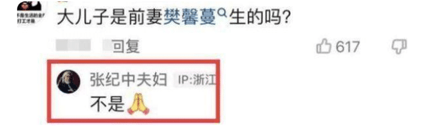 張通過一個短視頻賬戶發布了一段馬丁與兄妹玩耍的視頻。一位網友留言問張,他的前妻范欣曼是不是生了長子(馬丁)?張在回復中明確否認