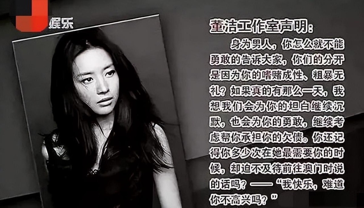 為了讓自己擺脫困境,董潔工作室發聲稱:潘粵明喜歡賭博、會家暴、并且已經失去了生育能力。
