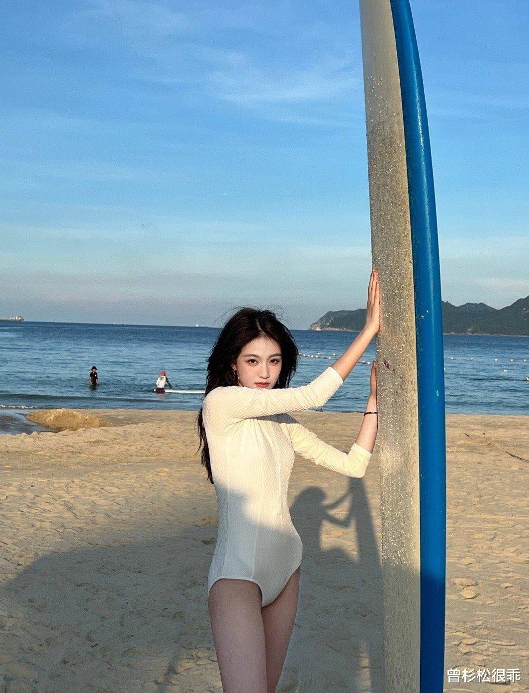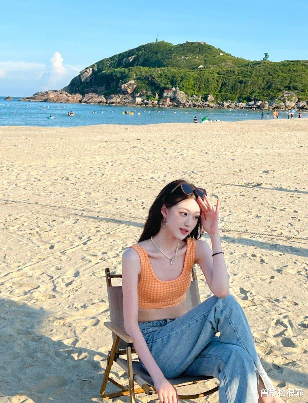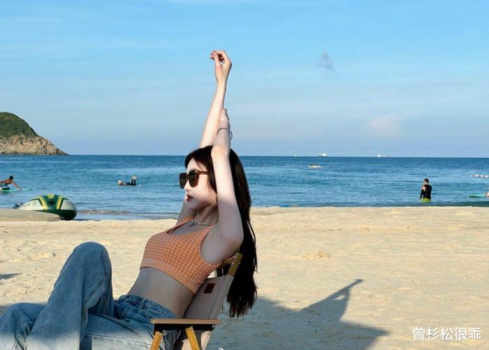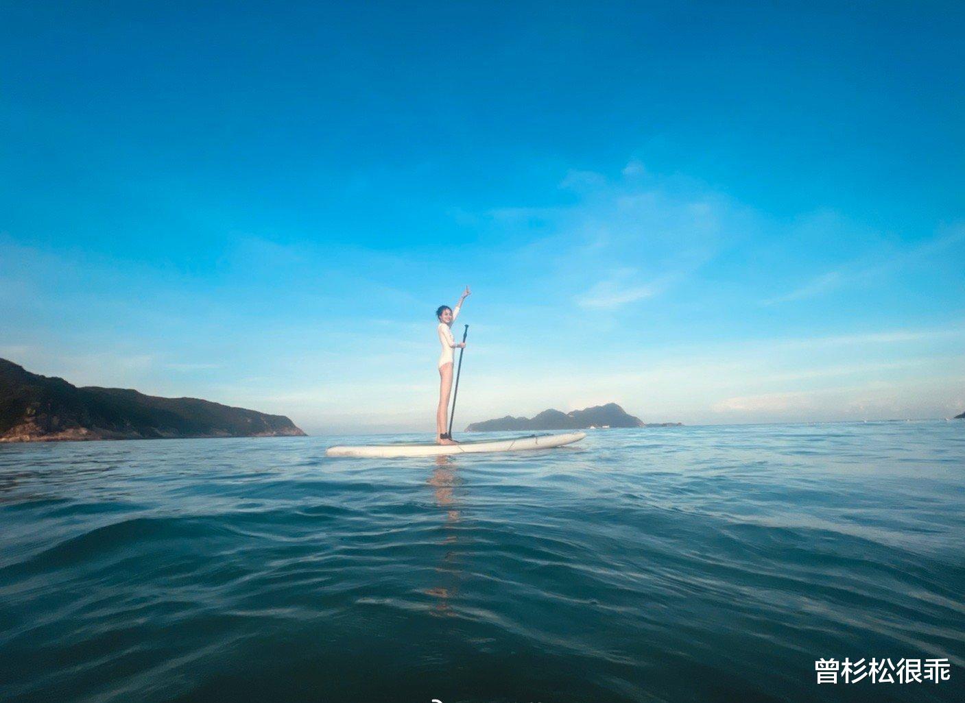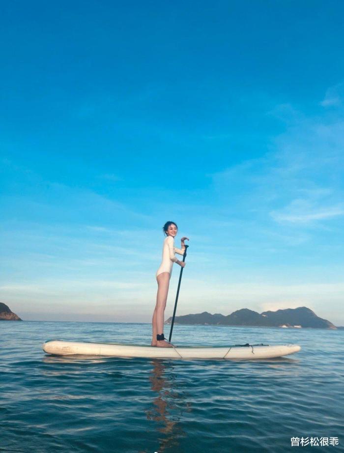 我們看到張所曝光的這些“碎片”都是在海邊玩耍的照片。我們看到張一開始穿著橙色的露臍背心,坐在沙灘上欣賞海景。之后,她換上一件白色的泳衣,去海邊劃槳。