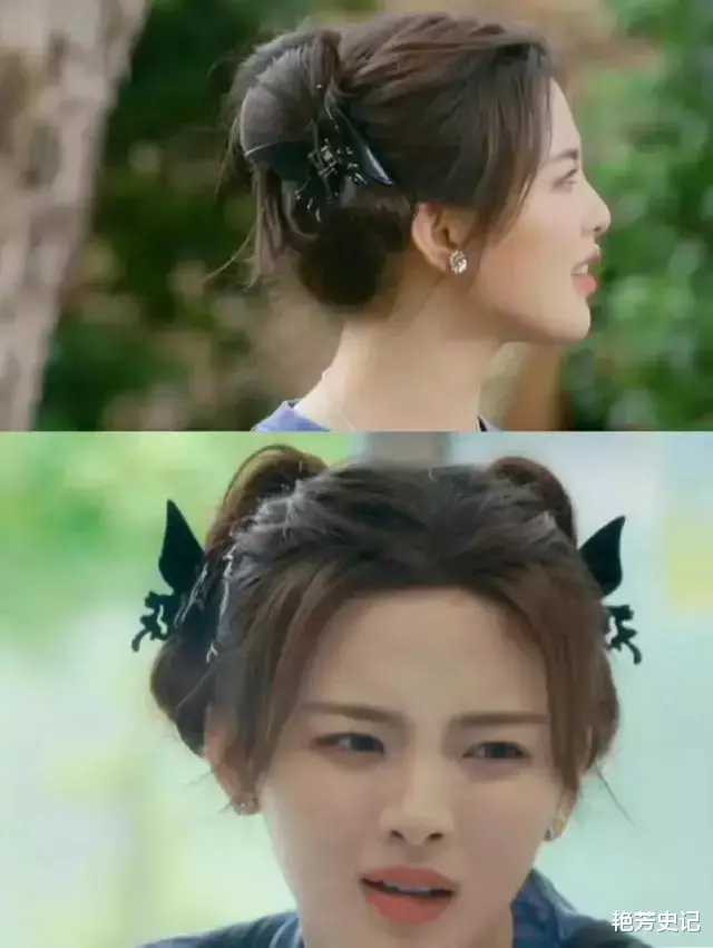 楊超越發量看起來是這樣的,頭發多到需要用兩個蝴蝶抓夾才能勉強固定。