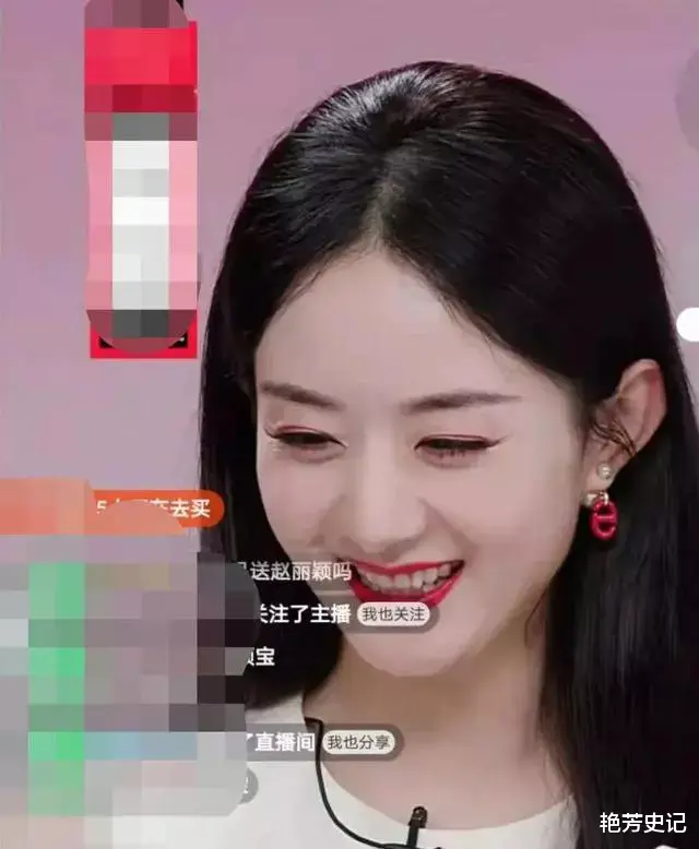 在直播間,趙麗穎是中分披發造型,中分只分到前半段,到后半段就直接全部梳到腦后。細心網友就發現突出的高顱頂發色是黃色,跟前半段黑發不一致,實在是突兀。不少網友都質疑,趙麗穎應該是產后脫發所以戴了假發套。