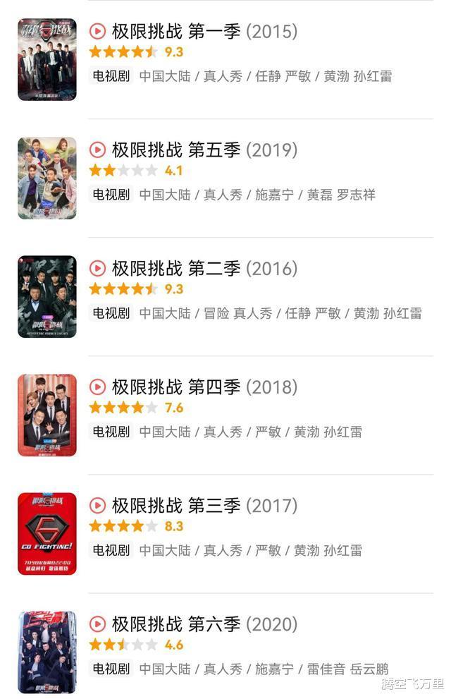 在錄制了《極限挑戰》第四季后,真人秀綜藝節目從未恢復。雖然每年都會出現許多新的綜藝節目,但它們的質量水平參差不齊,不可能達到曾經受到極端挑戰的高度。讓人失望的不僅是新的綜藝節目,還有東方衛視每年播出的《奔跑》、《極限挑戰》等老綜藝節目,都無法滿足觀眾的胃口