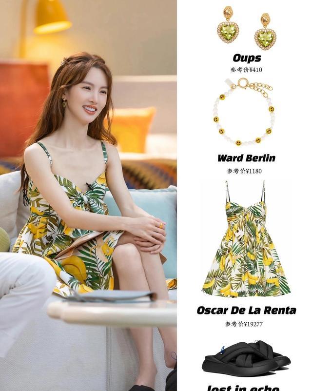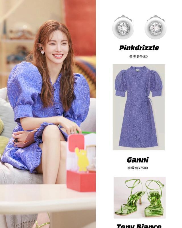 在衣柜里挑來挑去,最終選了一條紫色的泡泡袖短裙,配上一雙1380元的綠色涼鞋和一對480元的銀耳釘,妥了!既清涼又便宜,這也是普通人咬咬牙就能買一身的相對很便宜的一身穿搭了。