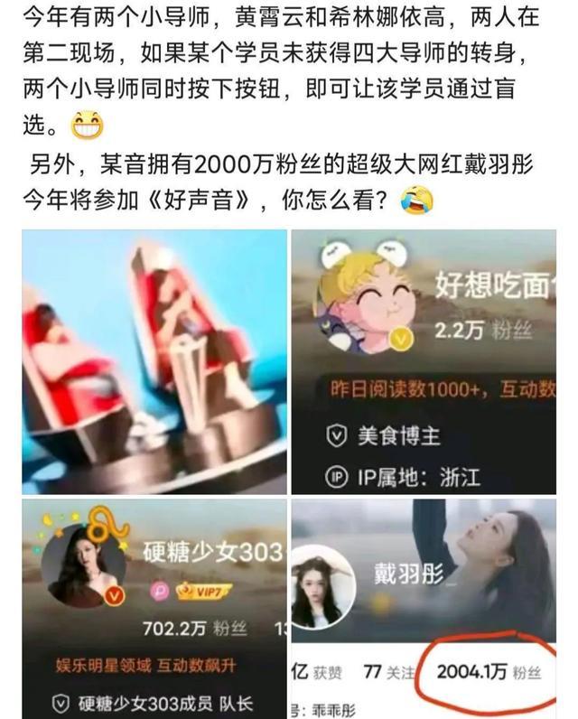 除此之外,該網友還爆料千萬粉絲網紅戴羽彤將以學員身份參加今年的節目,戴羽彤是一名網紅歌手,她翻唱過許多經典歌曲,其中《那女孩對我說》目前在某音平臺十分火。