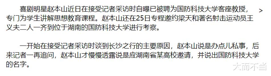 趙本山的素描很搞笑,我更幽默。我認不出所有的單詞,所以我成為了一名教授。趙本山被國防科技大學聘為客座教授