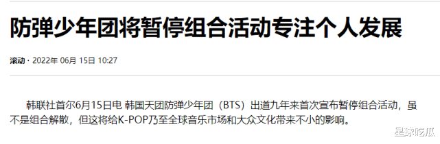 下圖是韓國一家著名媒體最新報道的截圖:防彈青年團(BTS)將暫停其聯合活動