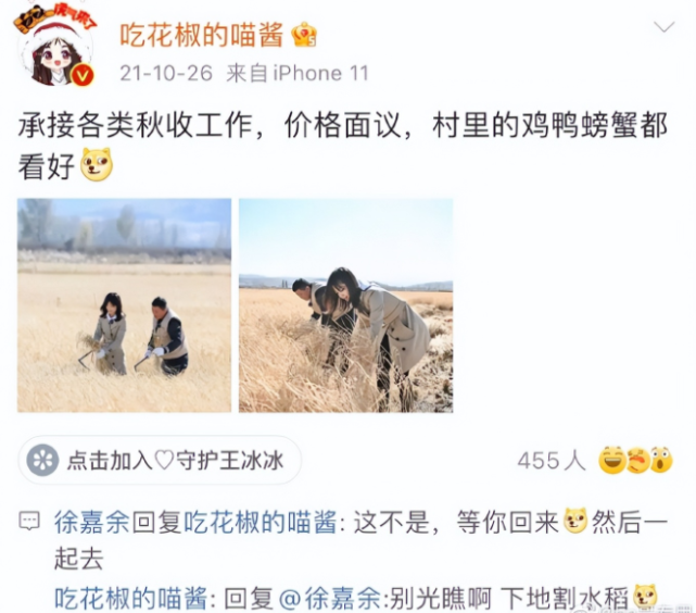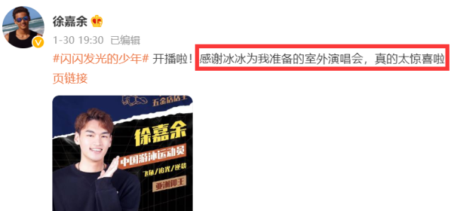 此前徐嘉余還曾表示好多人都敢大聲說冰冰我愛你,我就不敢,這是不是早就給出了暗示?