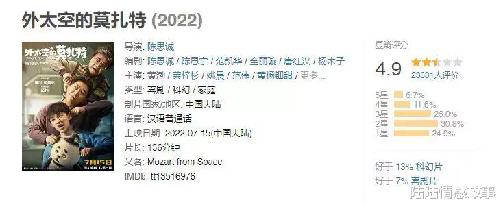 而另一部萬眾期待,本應(yīng)該成為暑期檔最大黑馬的陳思誠作品《外太空的莫扎特》