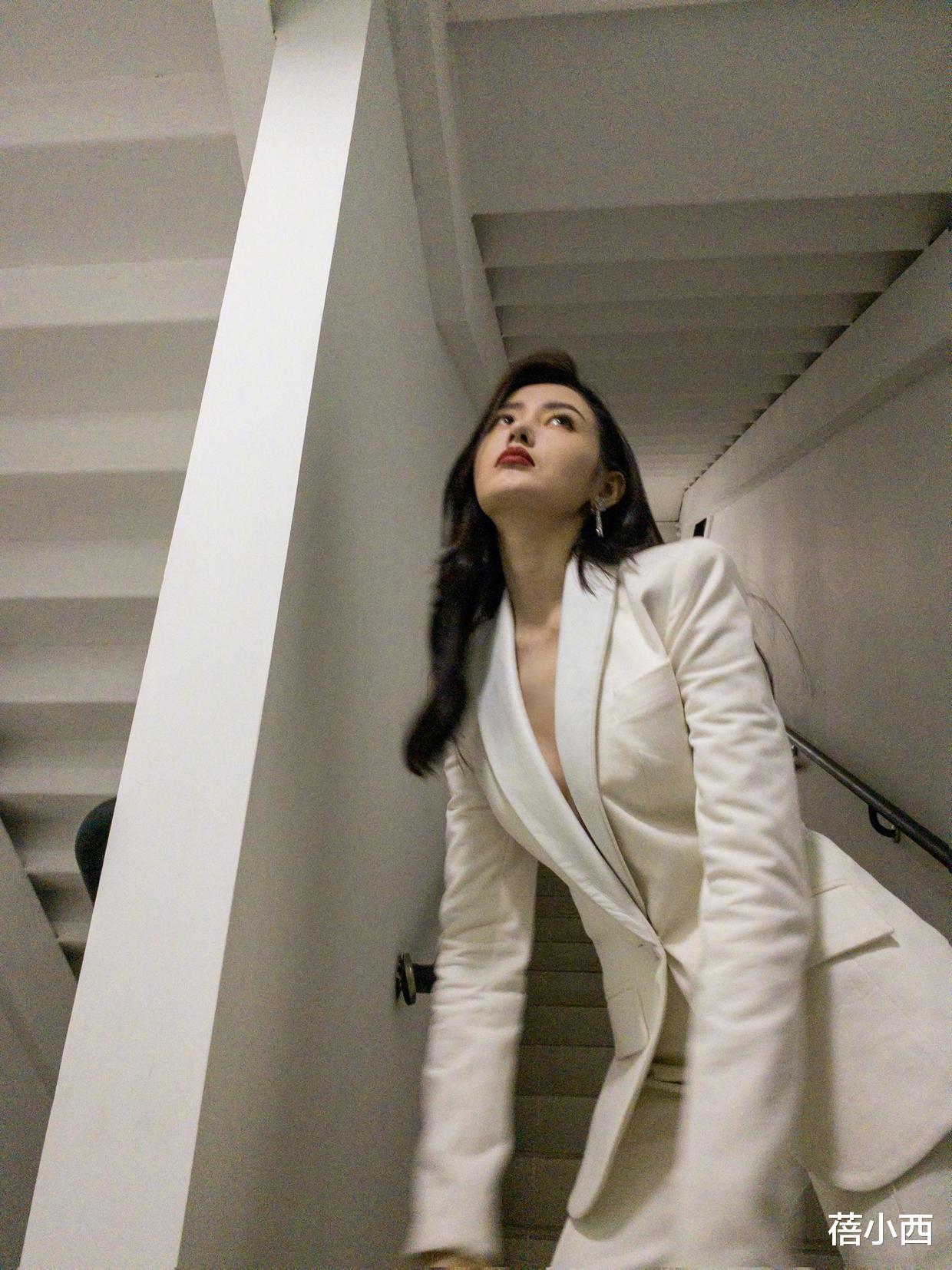 一個像張?zhí)鞇圻@樣身材好的女人,可以穿西裝夾克,通過領(lǐng)口設(shè)計來展示她的白皮膚,她看起來非常性感