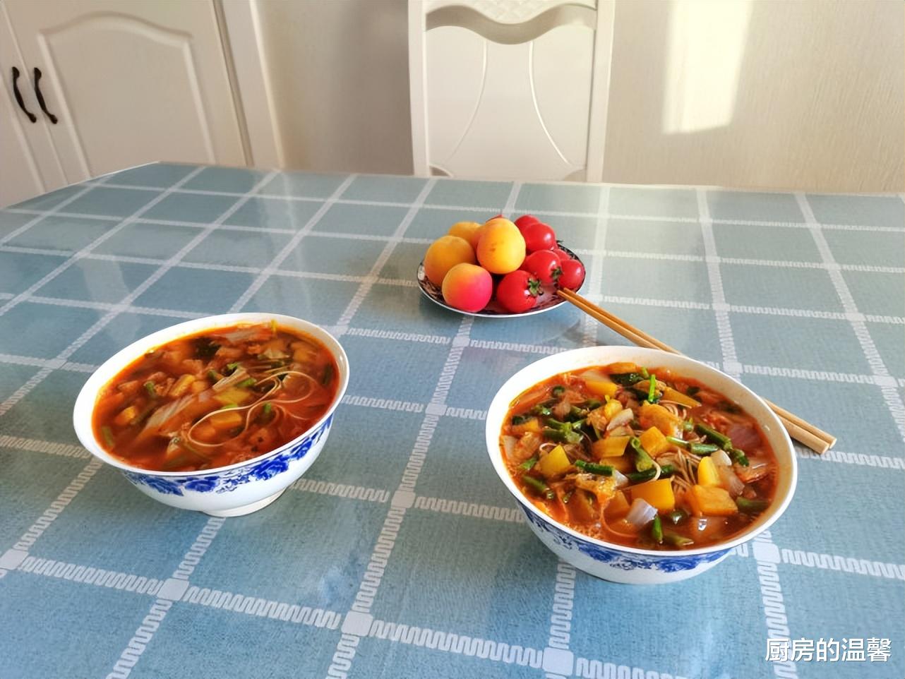 我家的臊子面,大多都是蔬菜和湯汁,面條比較少,最愛喝這口臊子湯。