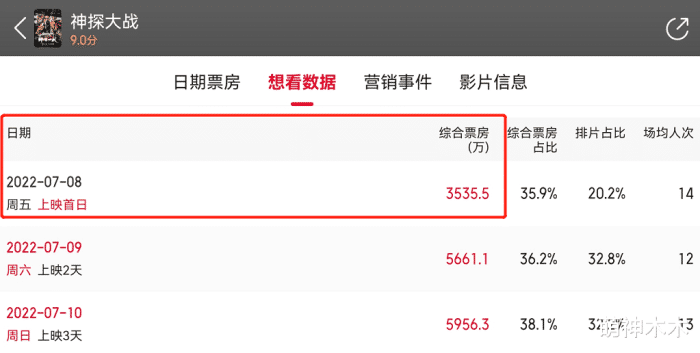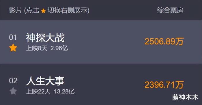 可能有人不知道電影的首日票房,但我們不妨做個比較,看看同期上映的《人生大事》和《神探大戰(zhàn)》吧。
