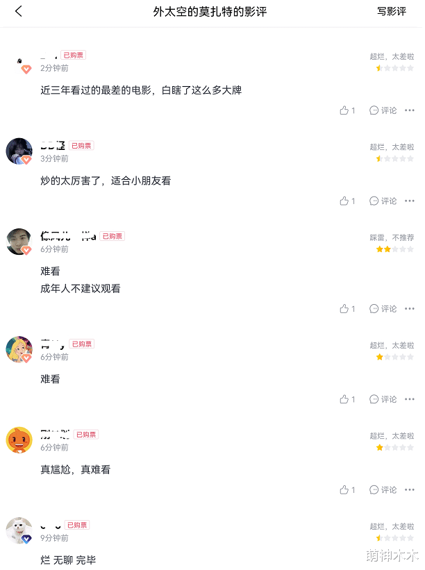 《外太空的莫扎特》的評論區(qū),也是一片罵聲。