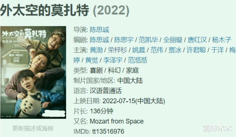 《外太空的莫扎特》的導演是陳思誠,他一手打造了《唐人街探案》和《誤殺》兩部商業(yè)電影,而主演則是黃渤。