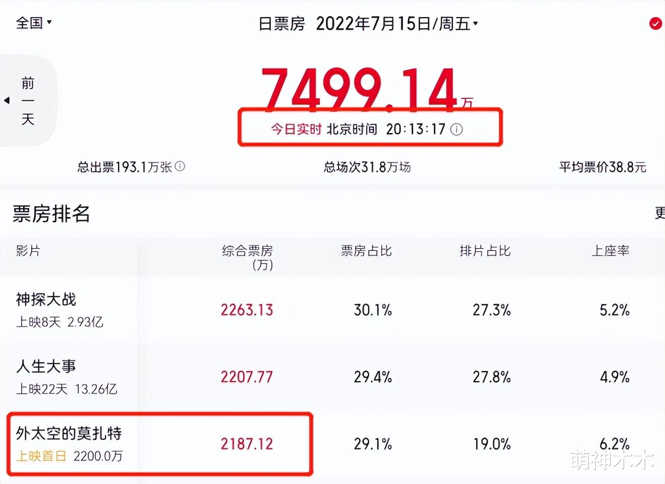 誰也沒想到,《外太空的莫扎特》首日實時票房上漲艱難,到了晚上八點,才勉強強強突破了兩千萬。