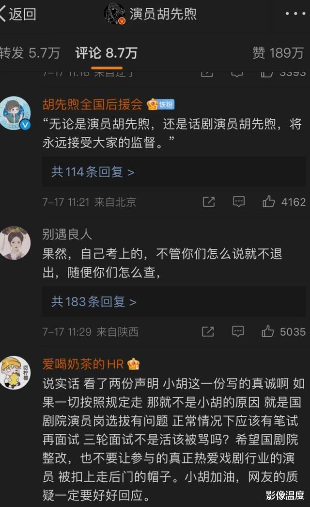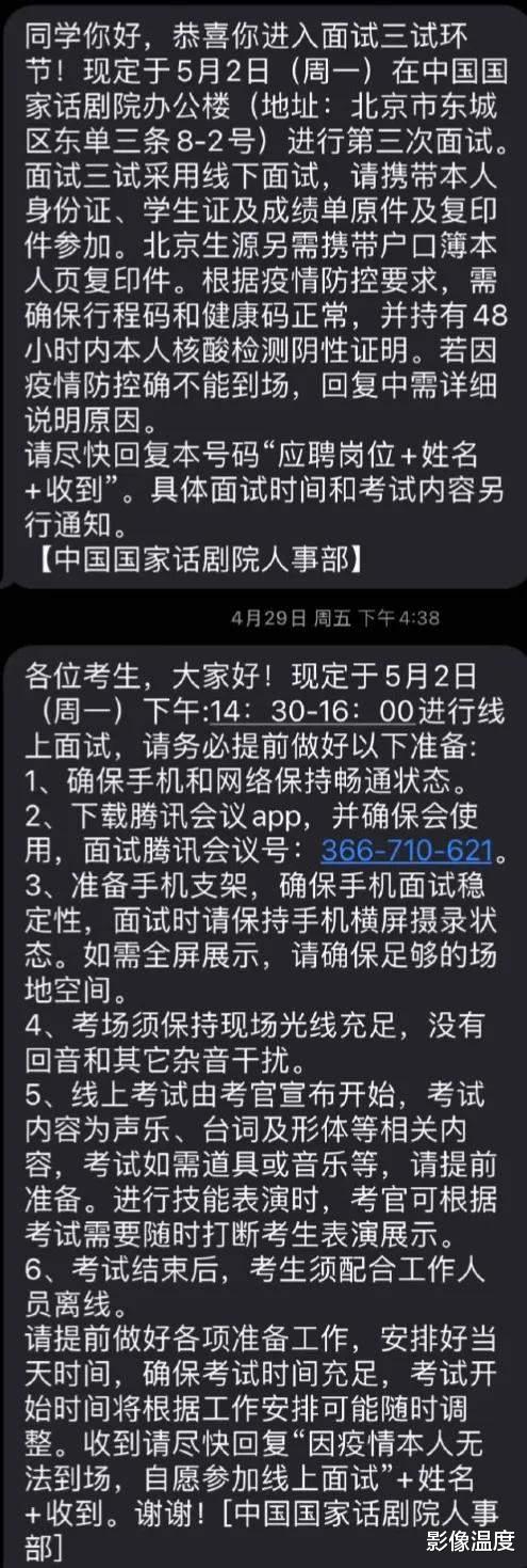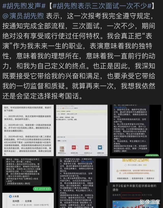 同時,入編國家話劇院的胡先煦也發文證明自己清白,他貼出了考試通知的短信截圖: