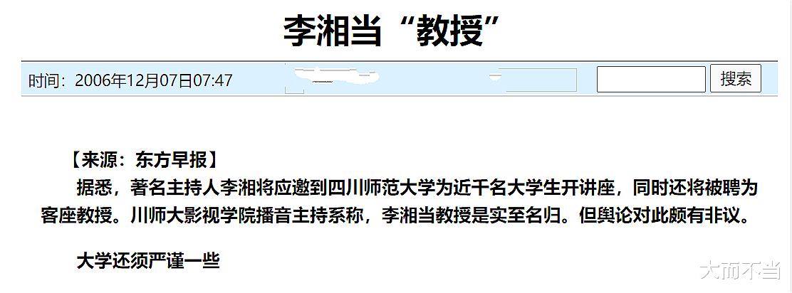 2006年李湘擁有了一個非常特殊的身份——被四川師范大學聘請為影視學院播音主持系客座教授。