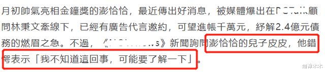 每次澎恰恰鬧出事,媒體總會聯系皮皮詢問,而他總是一臉懵,完全不知道發生了什么,一看就知道澎恰恰日常做事基本不和他溝通,甚至連具體收入都不跟兒子透露。