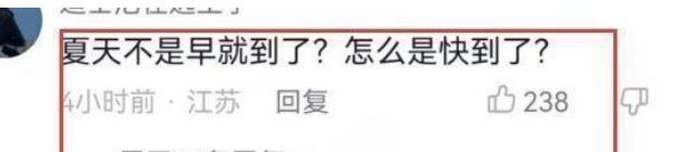 也有網友吐槽道:我們不是一個國家嗎?為什么你的夏天快到了,我們已經過了兩個月夏天了,有的地方的天氣早就三十六七度了!