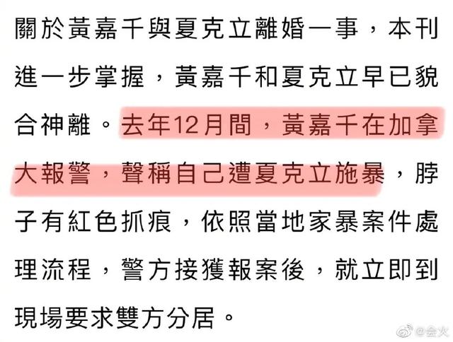 這邊的黃嘉千和夏克立打得火熱,離婚大戲估計剛剛拉開序幕;