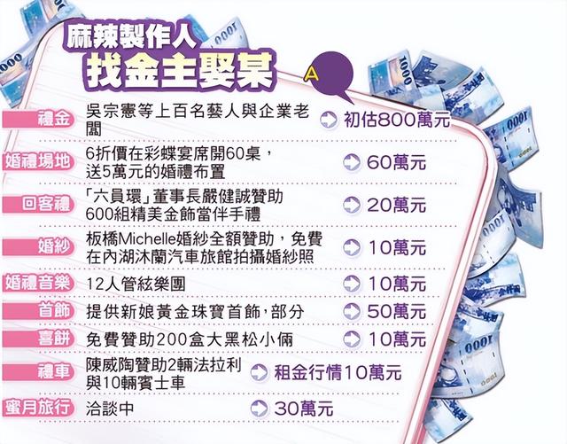 和芽芽的婚禮,也全賴商家贊助,菜品被一眾藝人吐槽。