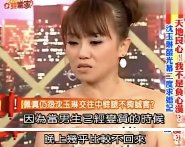 彼時交往八年的女友佩真,在鏡頭前哭著指控沈玉琳出軌、冷暴力,沒有感情也不愿意明確說出一句分手。