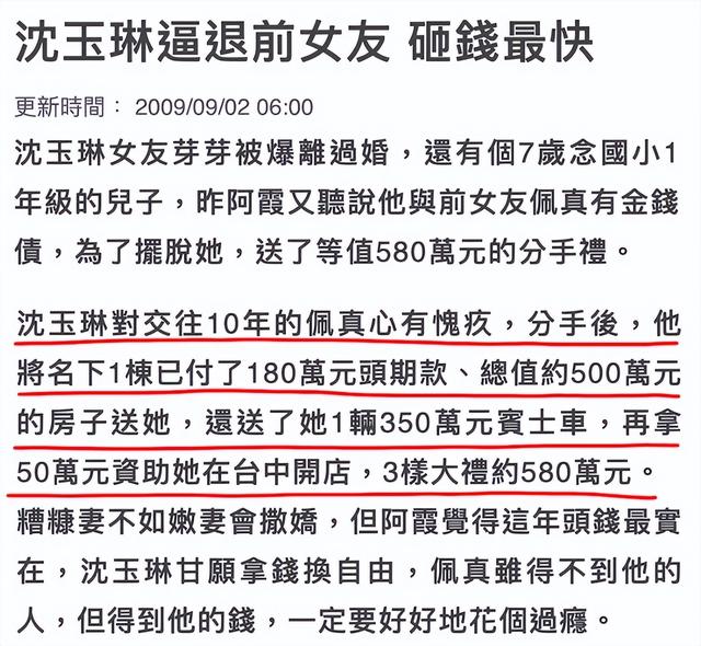 有了對比,沈玉琳還愿意以580萬的分手費,畫上句號,居然也不算差了……