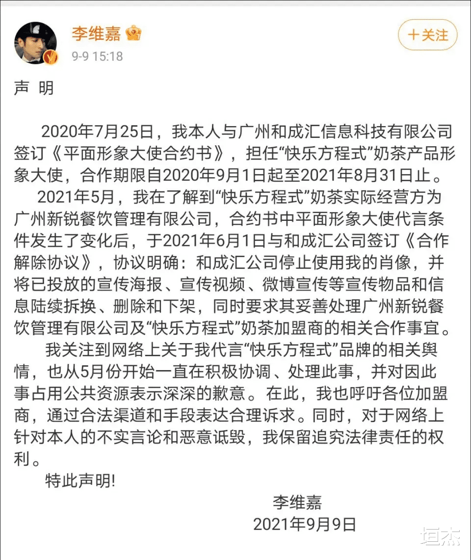 李維嘉代言的名為“快樂方程式”的茶飲店,頂著碩大的明星效應,引得不少加盟商往里砸錢。