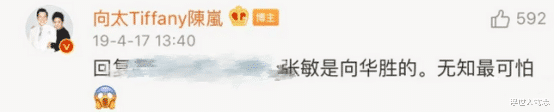 很多年后,微博時(shí)代到來,搞不清楚張敏與向華勝關(guān)系的網(wǎng)友,在向太陳嵐的動(dòng)態(tài)下將張敏與向華強(qiáng)聯(lián)系在一起,被向太“翻牌”回復(fù)“張敏是向華勝的,無知最可怕”,也算是對(duì)張敏與向華勝當(dāng)年的關(guān)系做出了官方認(rèn)證。