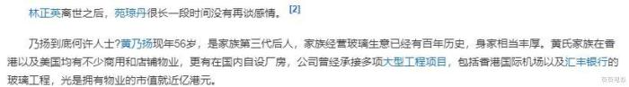 苑瓊丹最終在2004年收獲和“玻璃大王”億萬富豪黃乃揚的愛情。