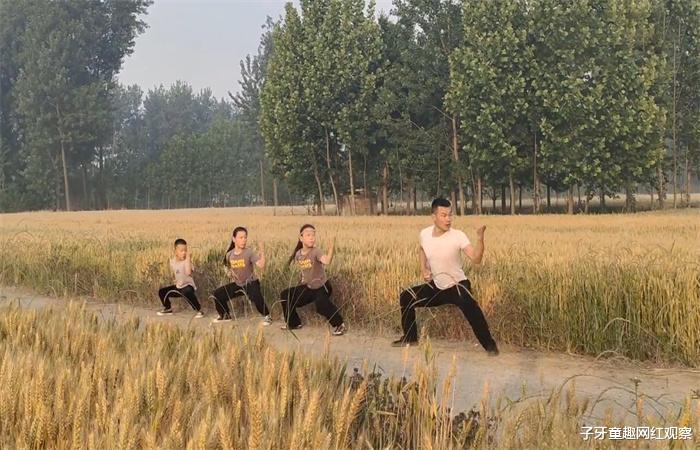 只見(jiàn)4個(gè)人在田間小路上跑步、踢腿、翻身,不僅動(dòng)作整齊劃一,還十分威武利落,絕非一日之功。這就是火爆全網(wǎng)的武術(shù)之家,像這樣的習(xí)武訓(xùn)練,他們從四年前就開(kāi)始,一直堅(jiān)持至今。那他們究竟是如何走向這習(xí)武之路的?這還得從三個(gè)孩子的父親劉龍說(shuō)起。
