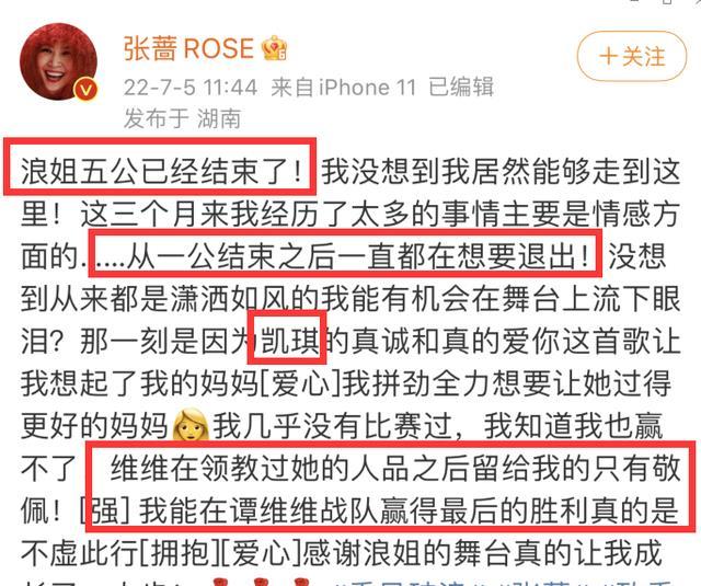 通過觀察可以發現,張薔這段文字中的表情包都是以文字的形式出現,有網友猜測是直接從朋友圈復制過來發布的,如果光明正大的劇透《浪姐》,真的很勇。另一方面也有網友質疑其與于文文搭檔時間最久,在發文時大贊譚維維卻不提于文文,甚至連于文文的合照都沒放一張,是不是不喜歡和于文文搭檔?