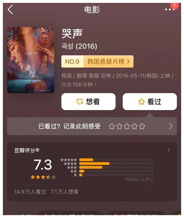 哭聲|又爽又懵逼的韓國高分驚悚懸疑片哭聲(2016)豆瓣7.3分推薦指數故事簡介:韓國的一個村莊發生了一系列殘暴而難以解釋的神秘謀殺,死亡仿佛會隨機降落到某個村民身上。一名年老的日本人剛剛搬到村邊樹林里隱居,一時間,村內謠言四起。警察面對系列謀殺毫無頭緒,既找不到兇手,也沒有合理的解釋。這部片兩個多小時都是驚悚恐怖的氛圍,但是看完給我的感覺就是又爽又懵逼!這部電影通過不同的視角來闡釋同一件事,但是真相卻無法揭開。因為誰都有自己的真誠,誰也都有自己的虛偽,人性的復雜導致了敘述的多元,而真相恐怕只有上帝知道。所以惡魔究竟是誰?是因為傳染病引發的癔癥、神棍的裝神弄鬼、三人成虎的傳言,讓村里人籠罩在恐怖之中?還是由于村里人的歧視、偏見和污蔑最終將日本人造就成了惡魔?亦或是惡魔一直都在,只是之前隱藏在暗處,最后附身在已死的日本人身上?日本人施法究竟是為了救人,還是為了制造僵尸?——這無疑是故事主線中始終在尋求和論證的問題。女鬼是誰?有什么背景?——一直沒有交代,或許首先需要弄清楚她的所作所為,才能進行推斷。女鬼有什么目的?女鬼是在幫鐘九,還是幕后的惡魔?——女鬼跟日本人的對立關系非常明顯,所以她的動機非常重要。除此之外,還有更多地方設置了懸念,例如日本人為什么來這個村子?日本人強暴婦女的傳言是怎么回事?鐘九所作的噩夢只是噩夢還是被故意施法產生的幻覺?施法的黑雞與白雞、日本人和女鬼追逐中分別穿的黑衣與白衣是否意味著什么?這部片子還有兩個值得一提的地方。一個是父女親情倫理關系在惡魔入侵后的破壞和扭曲,還有一個就是韓國巫師和日本人同時做法,男主人公的女兒在交錯的法術折磨中痛不欲生地掙扎,那急促的鼓點聲和各種鬼魅的舞蹈動作,加之各種光影的交錯,委實叫人心驚膽戰,難受不已。心里只有一個渴望:快TM讓這一切結束吧,太折磨了!以上三部高分電影你喜歡哪部,歡迎留言討論!!!