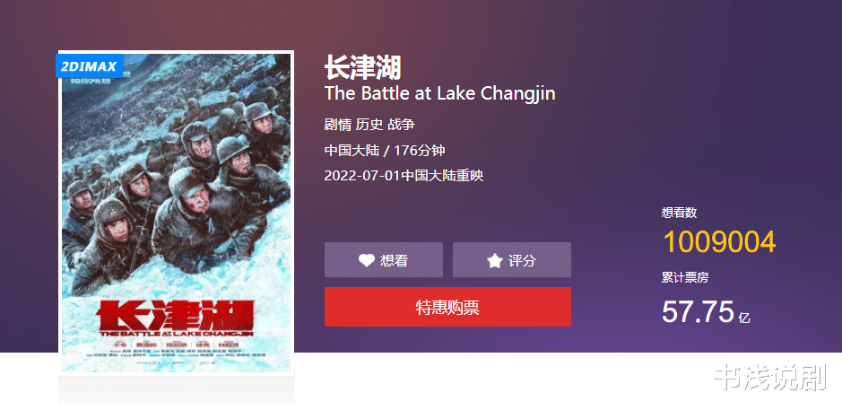 《長津湖》單部的實績就能達到57億,大制作收獲了高收益。